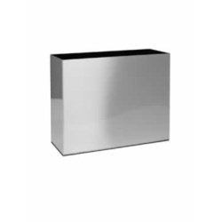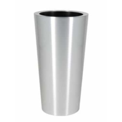 Eenvoudige metalen planter voorzien van een kunststof binnenbak.Geborsteld lijkt het een bescheiden planter, terwijl de gepolijste uitvoering meer aandacht durft