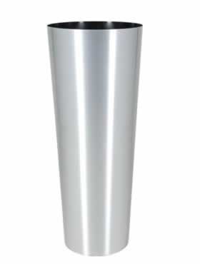 Eenvoudige metalen planter voorzien van een kunststof binnenbak.Geborsteld lijkt het een bescheiden planter, terwijl de gepolijste uitvoering meer aandacht durft te vragen.