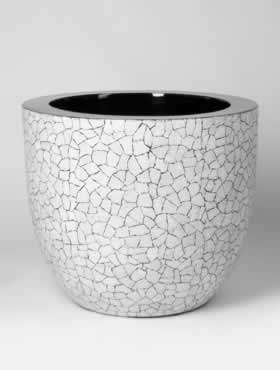 Unieke planters die hun sublieme schoonheid danken aan duizenden stukjes eierschaal die handmatig ingelegd zijn. Als de hele body bekleed is, wordt het ontstane mozaïek gepolijst en afgewerkt met een beschermende laklaag.