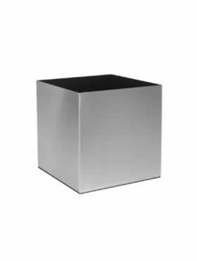 Eenvoudige metalen planter voorzien van een kunststof binnenbak.Geborsteld lijkt het een bescheiden planter, terwijl de gepolijste uitvoering meer aandacht durft te vragen.