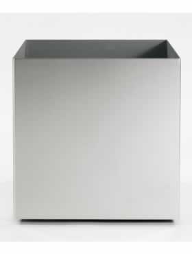 Eenvoudige klassiekvormige effen planter, maar dan van nieuwerwets roestvrijstalen materiaal.