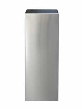 Eenvoudige klassiekvormige effen planter, maar dan van nieuwerwets roestvrijstalen materiaal.