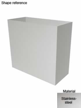 Eenvoudige klassiekvormige effen planter, maar dan van nieuwerwets roestvrijstalen materiaal.