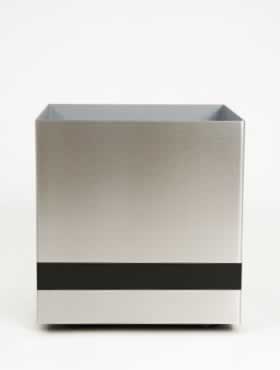 Een planter van geborsteld aluminium, maar met een grote plus: een zelf vorm te geven sierrand op de onderhelft.