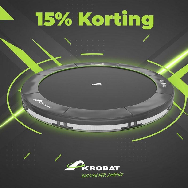 Oerdegelijk Ingroundtrampoline, Merk Akrobat, randkussen type Extra. Diameter van 365 cm.