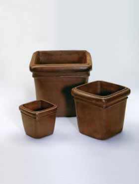 De streken van een schilder zijn verantwoordelijk voor de gepolijste uitstraling van deze stenen planters en imposante vazen. Hier als grenen zo licht, daar dubbeldik mahonie.